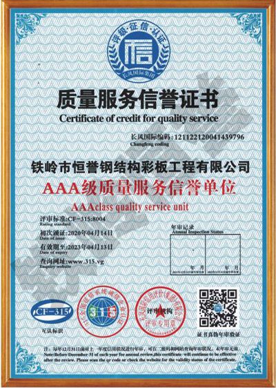 質(zhì)量服務(wù)信譽(yù)證書