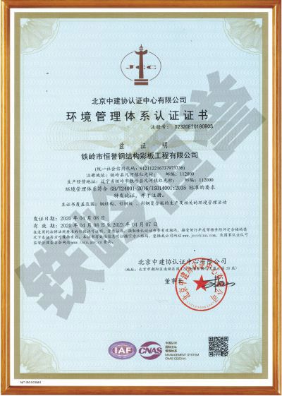 環(huán)境管理體系認(rèn)證證書